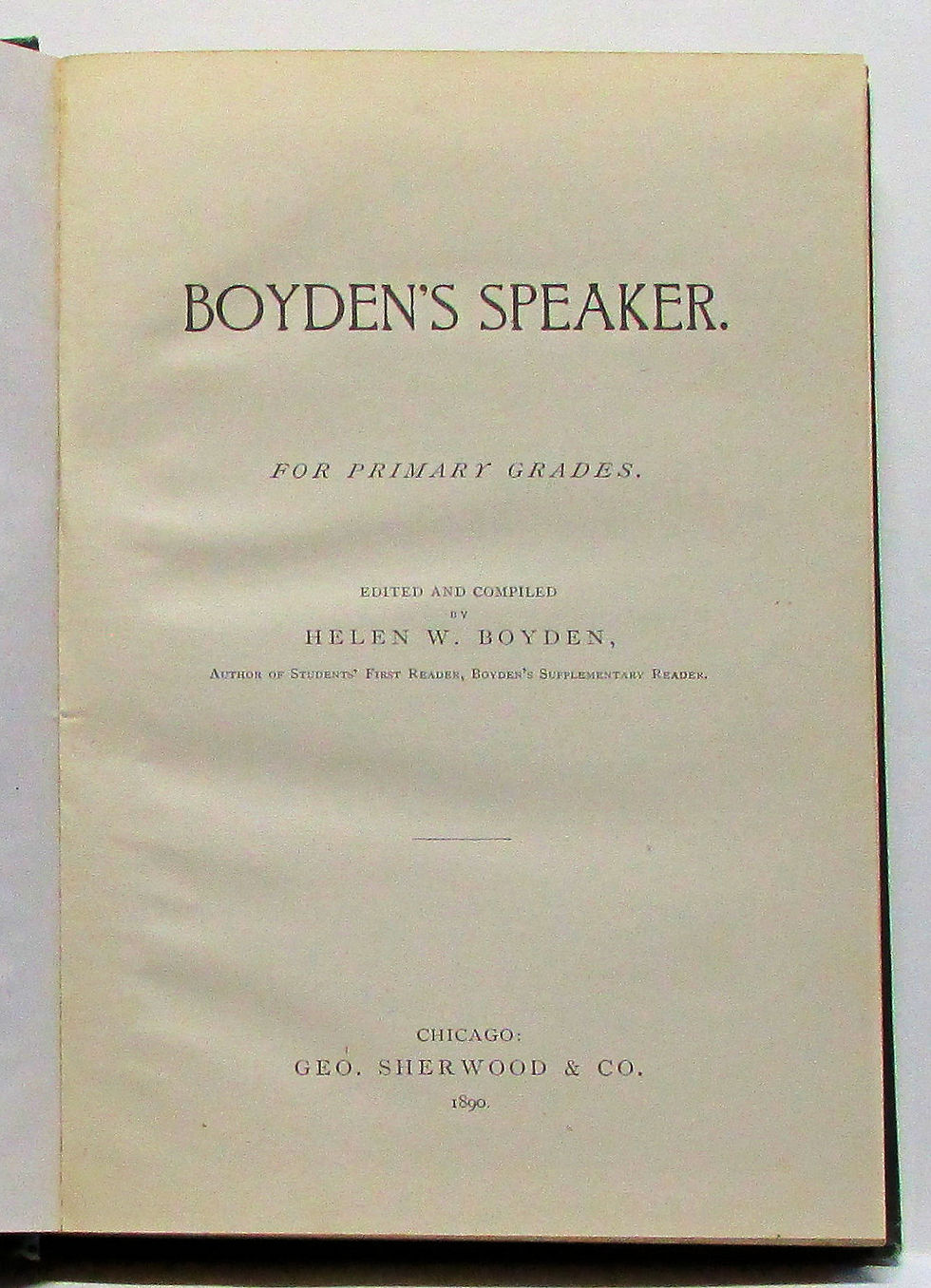 BOYDEN'S SPEAKER for Primary Grades by Helen W. Boyden 1890